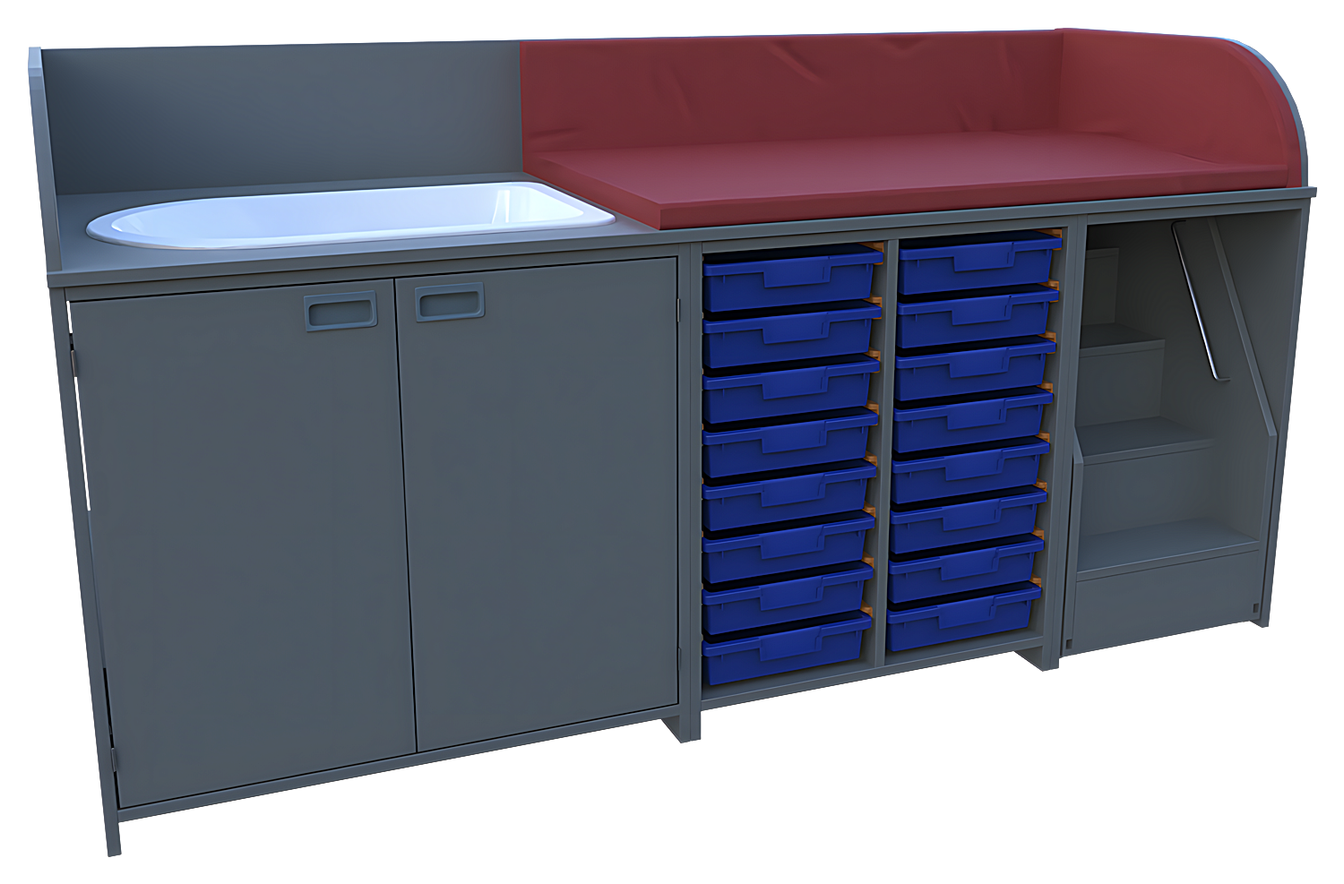 oben: 3-seitige Aufkantung für Wickelauflage