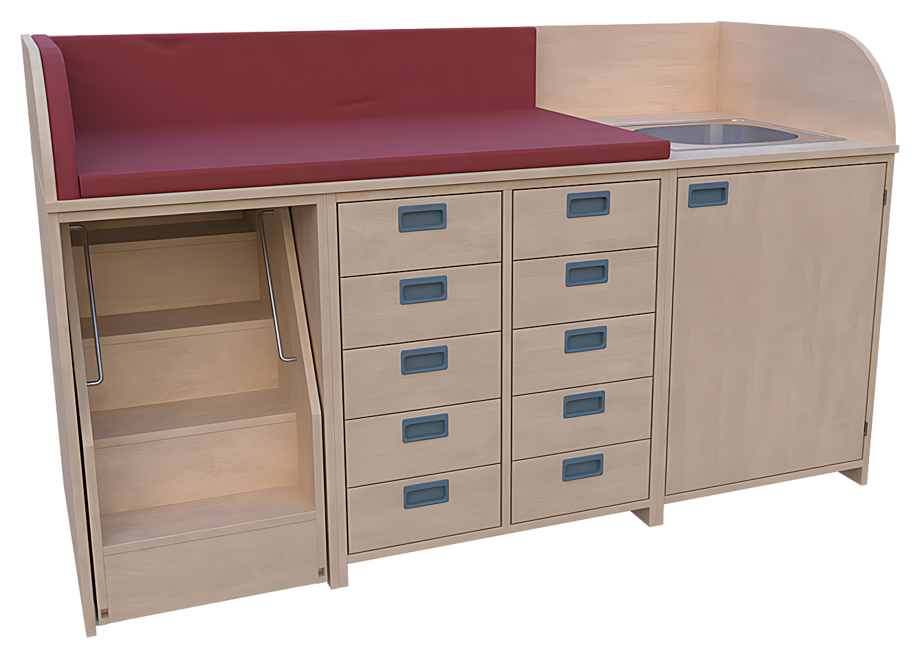 oben: 3-seitige Aufkantung für Wickelauflage
