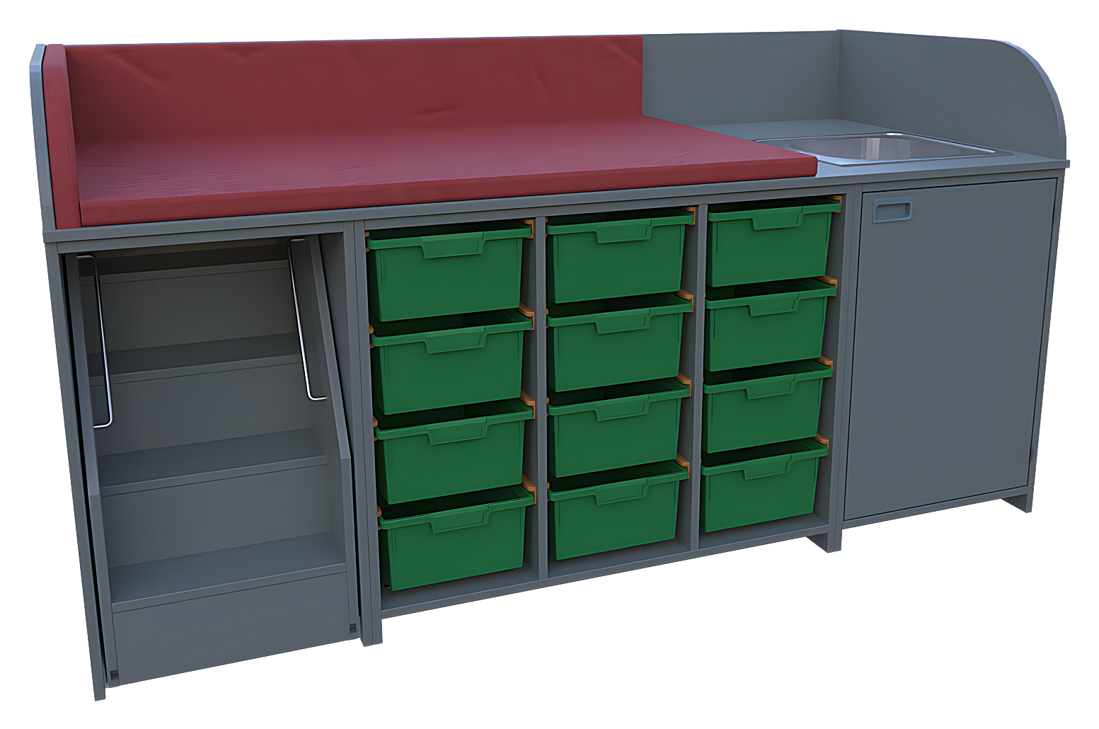oben: 3-seitige Aufkantung für Wickelauflage