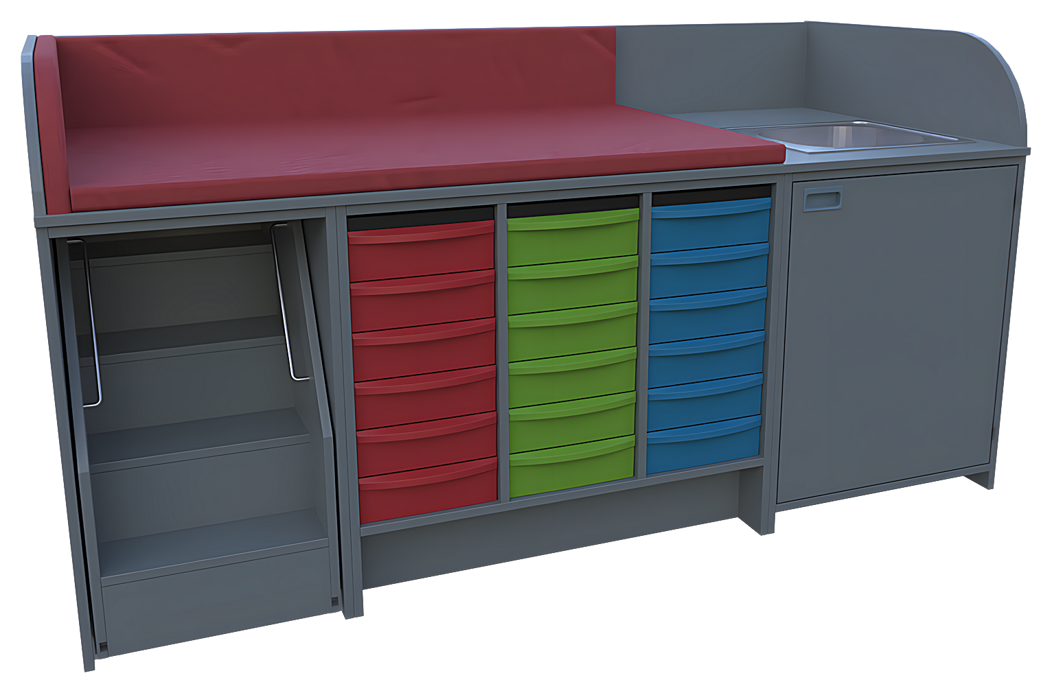 oben: 3-seitige Aufkantung für Wickelauflage