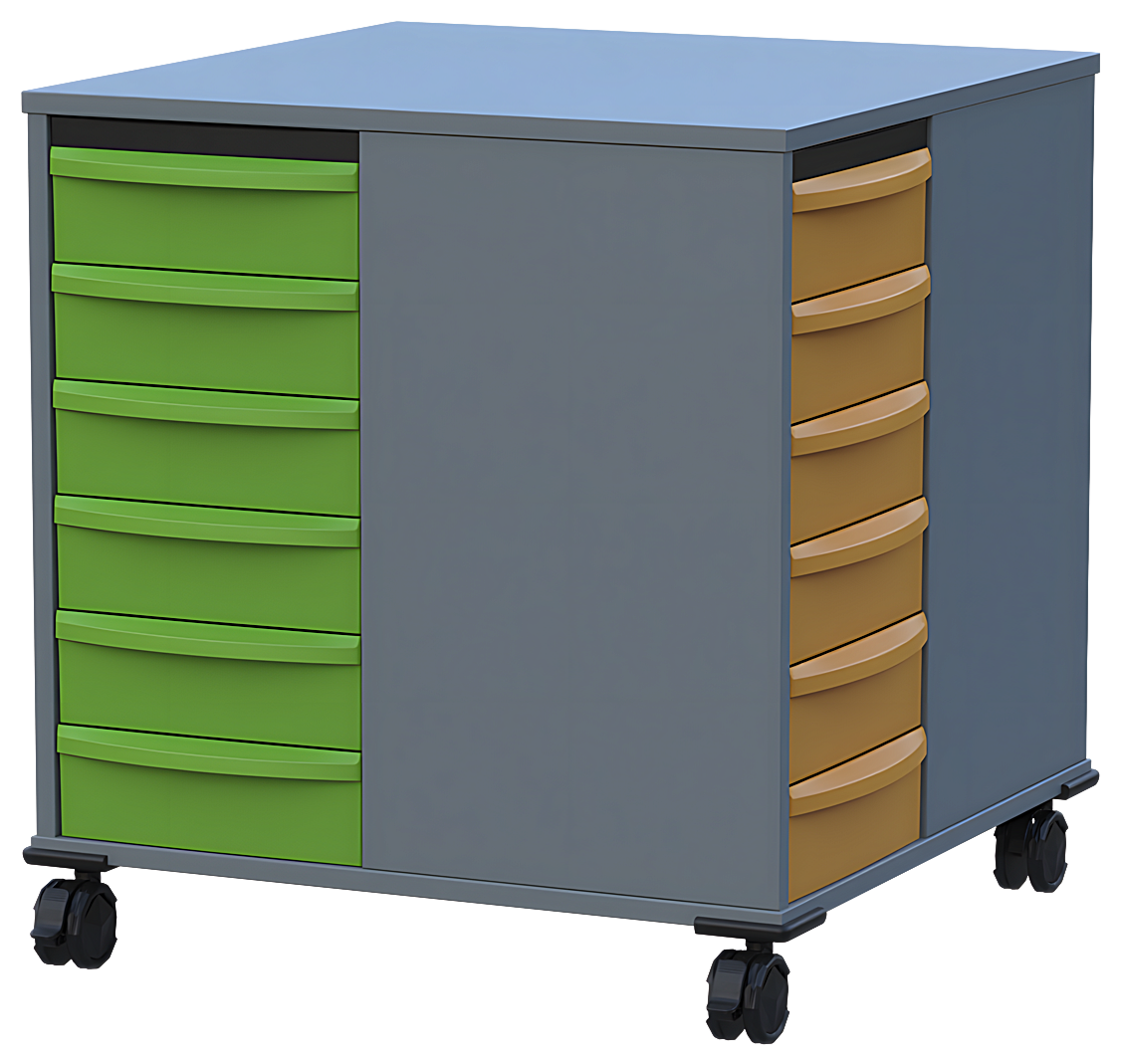 4 Rollen, 2 davon feststellbar mit Kantenschutz