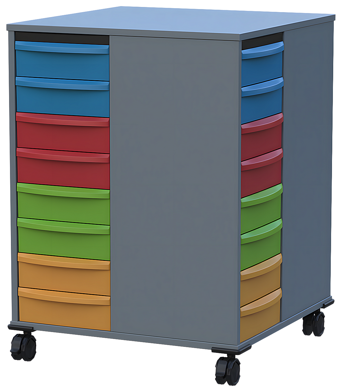 4 Rollen, 2 davon feststellbar mit Kantenschutz