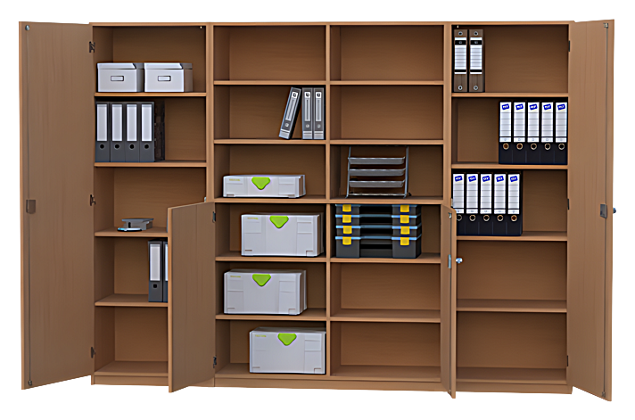 oben: offen, Mittelwand, 2 x 2 Einlegeböden